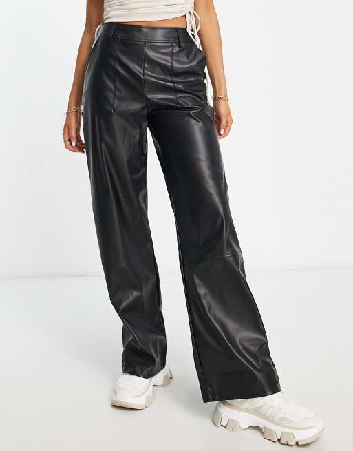 Pu clearance black trousers, River Island wide leg PU trouser with elastic waist in black clearance