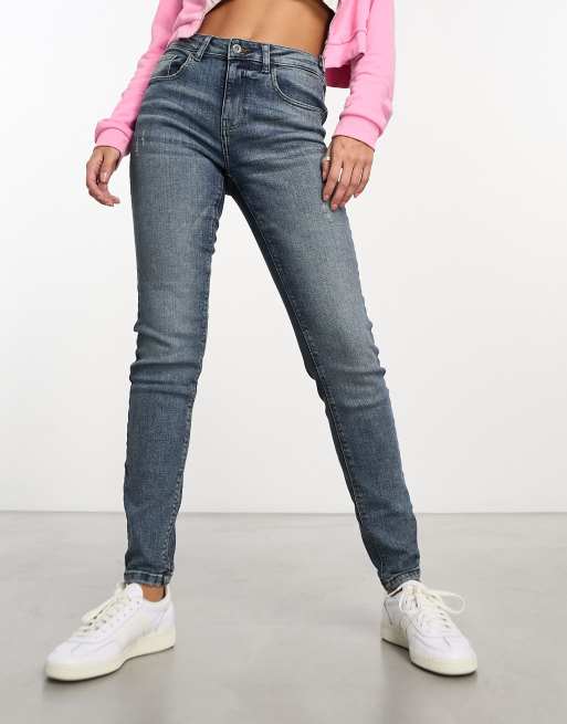 JDY bleach wash skinny jean in mid wash