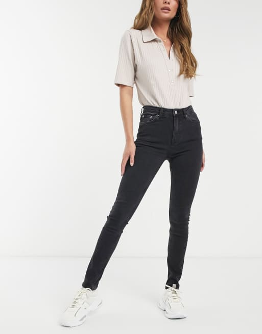 Weekday Thursday cotton blend high waist skinny jeans in black BLACK