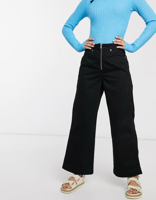 Weekday Yellow Vida High Waisted Wide Leg Jeans UK 8