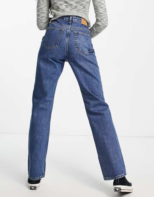 Weekday Rowe Extra high waist straight fit jeans in deep blue MBLUE