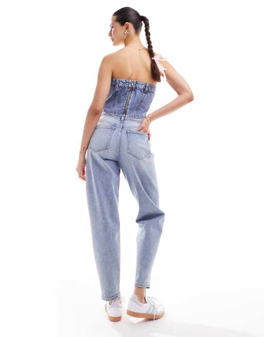 Overalls clearance mom jeans, Miss Selfridge mom jean in blue acid wash ASOS clearance