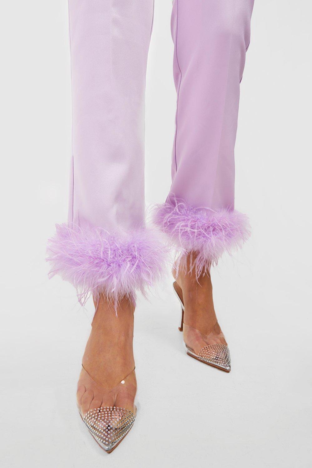 Tall Premium Cigarette Fluffy Feather Trim Trouser boohoo