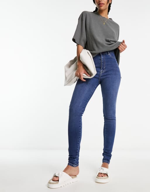 Dr Denim Moxy high waist skinny jeans in cape plain light blue ASOS