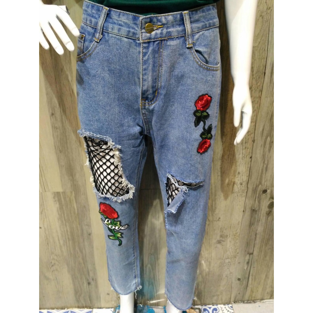 FOREVER 21 F21 boyfriends LOVE PANTS FISHNET EMBROIDERY Forever21