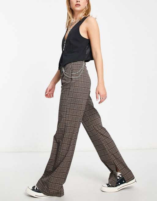 Bershka wide leg check tailored trousers co ord in brown ASOS