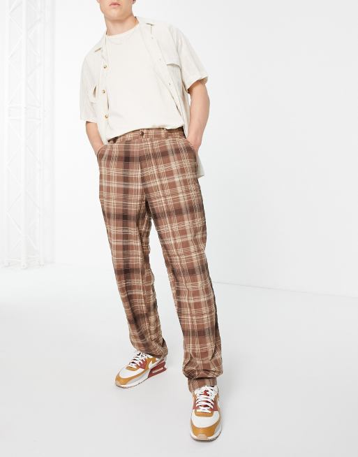 Baggy clearance plaid trousers, ASOS DESIGN baggy fit trousers in brown check ASOS clearance