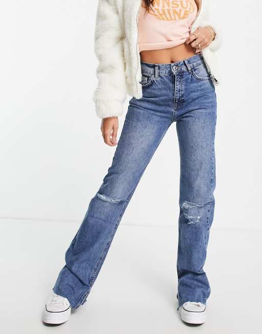 Pull Bear 90 s straight leg jeans with rips in blue ASOS