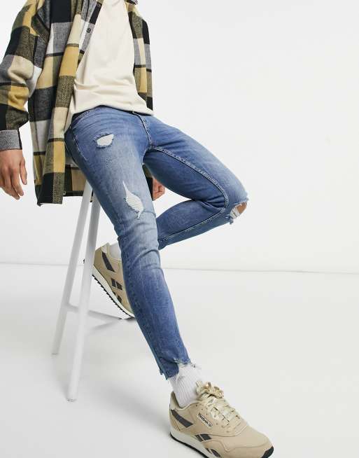 Pull Bear premium skinny fit jeans with rips in mid wash blue