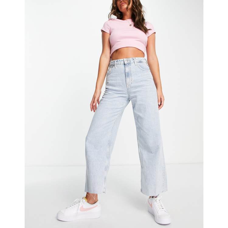 Pull Bear high waisted culotte jean in bleach blue