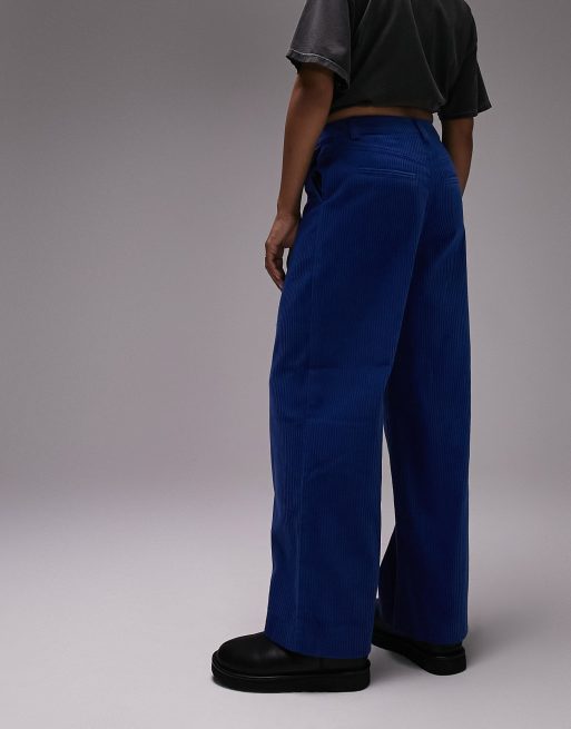 Corduroy peg trousers clearance topshop, Topshop Petite cord wide leg trouser in cobalt ASOS clearance