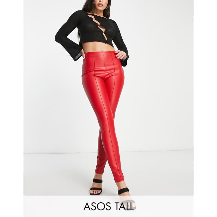 ASOS DESIGN Tall cigarette faux leather trouser in red