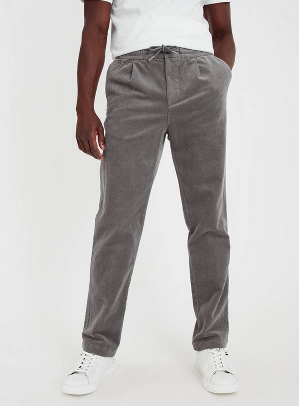 Buy Grey Corduroy Pull On Straight Leg Trousers 38R Trousers