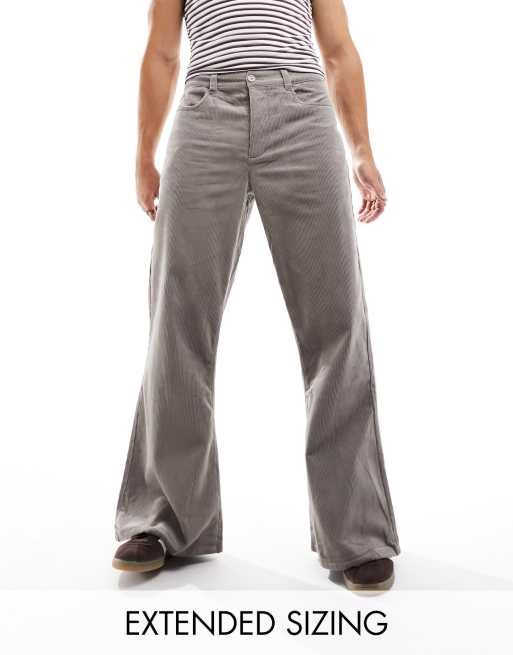 ASOS DESIGN ultra wide flare trousers in grey cord ASOS