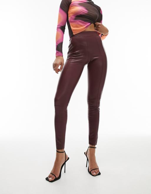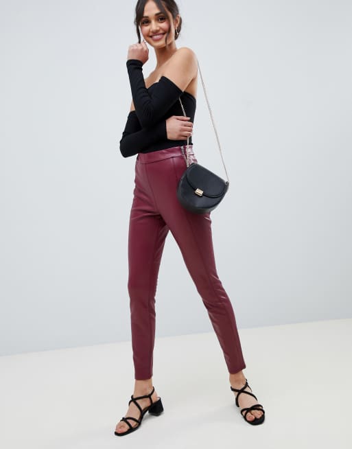 Miss Selfridge faux leather skinny trousers in burgundy ASOS