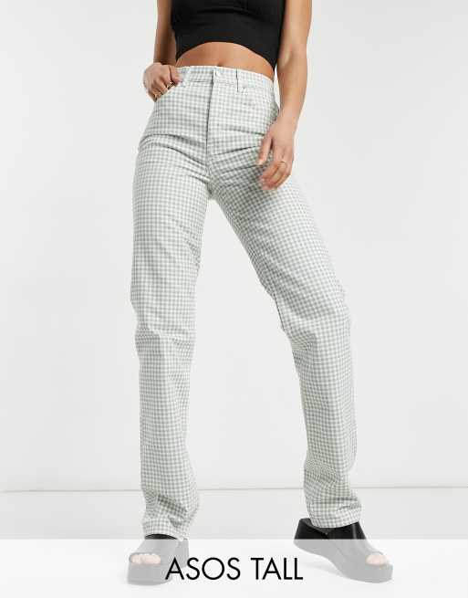 ASOS DESIGN Tall mid rise 90 s straight leg jeans in green gingham