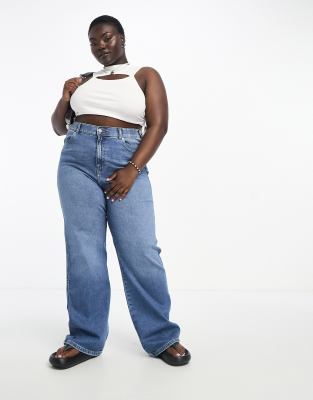 Dr Denim Plus Moxy straight sky high jeans in mid blue