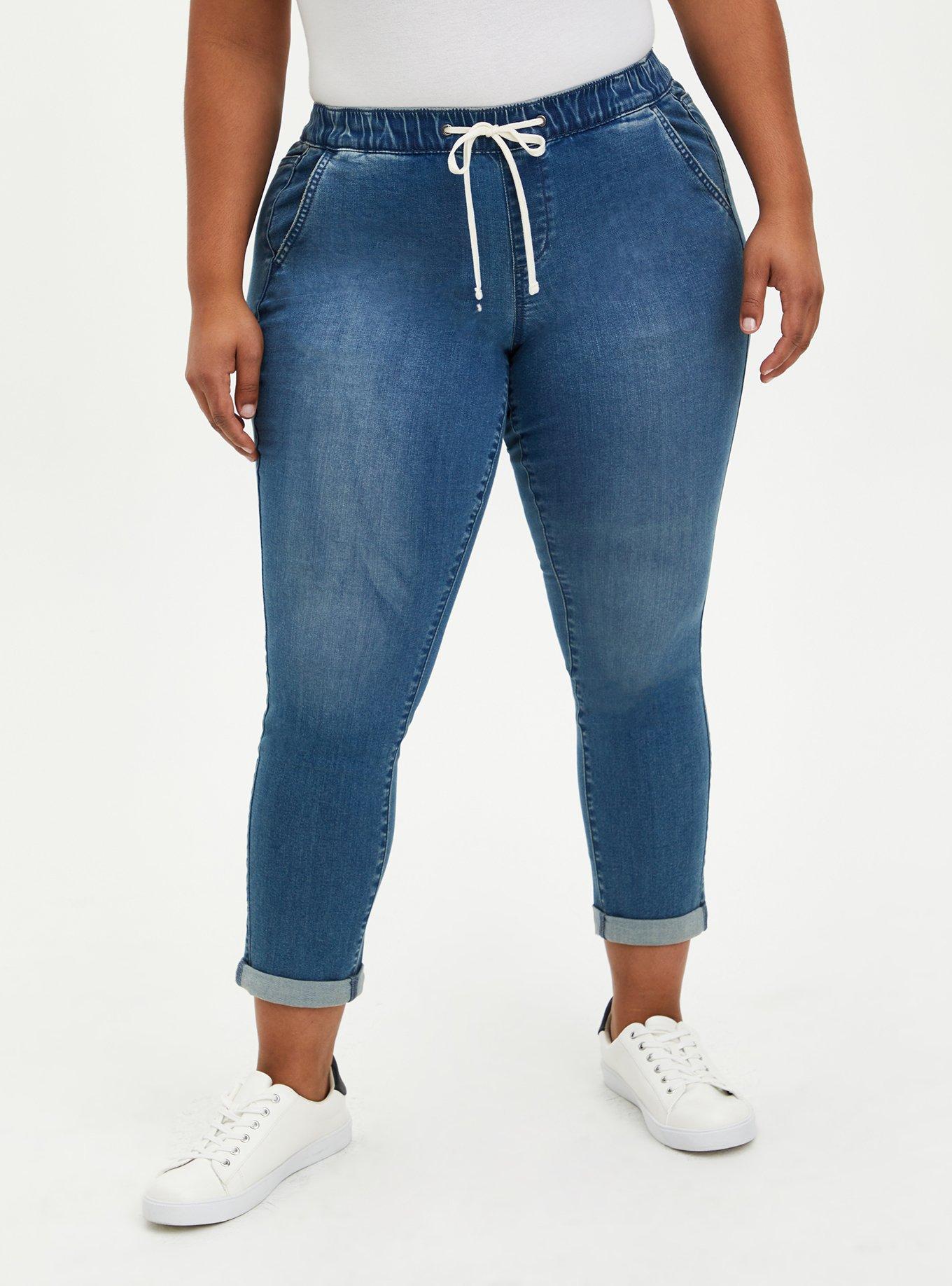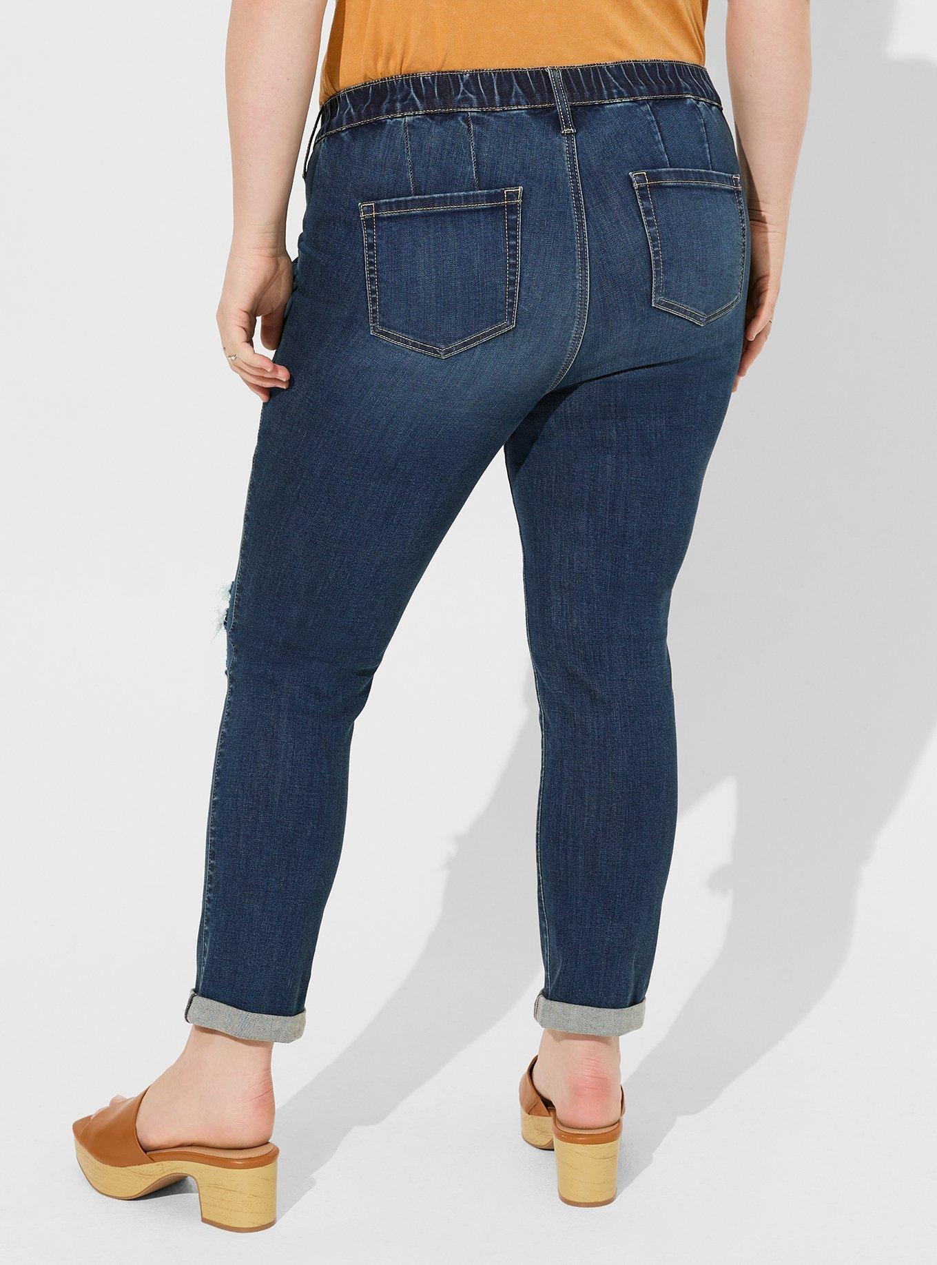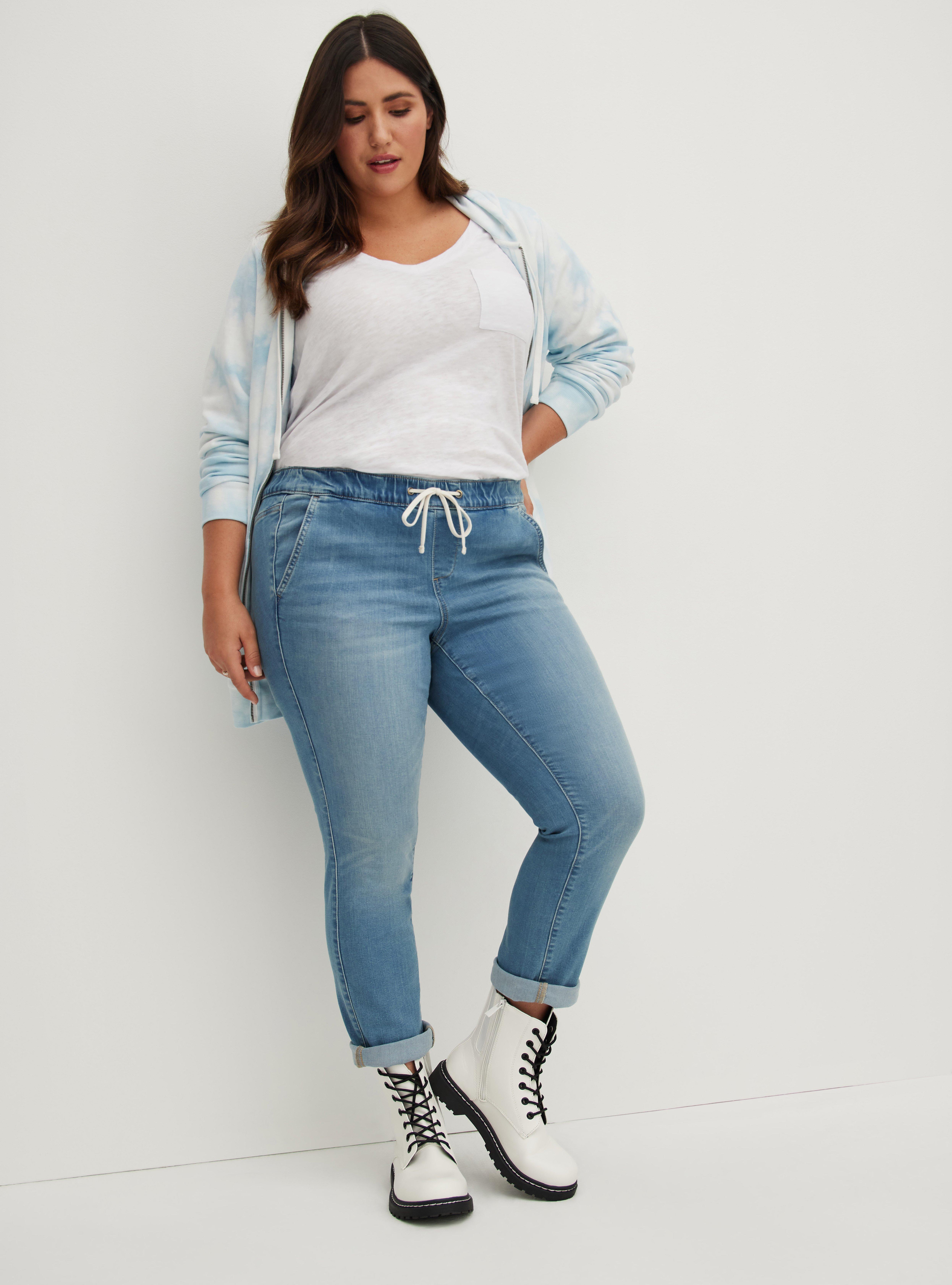 Plus Size Pull On Boyfriend Straight Super Soft Mid Rise Jean