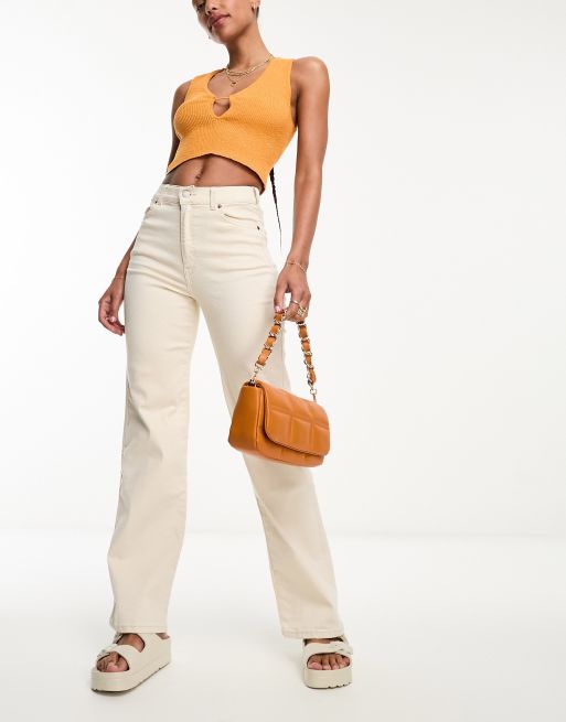 Dr Denim Moxy straight sky high jeans in beige ASOS