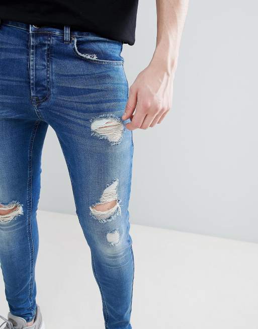 Gym King Super Skinny Jeans In Midwash Blue With Distressing