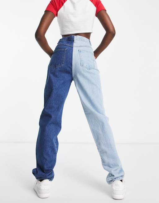 Women s High Waist Two Tone Color Mom Jeans Jeans Denim Pants