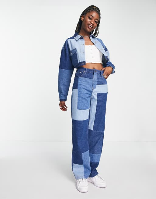 French Connection patchwork denim jeans co ord in mid blue wash ASOS