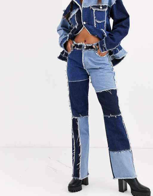 Jaded London high waisted patchwork denim jeans co ord