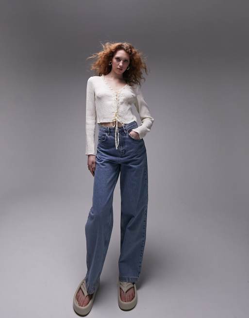 Topshop Y2K lace up Jamie flare jeans in indigo