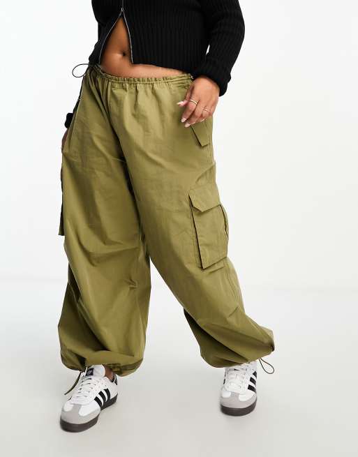 Plus size khaki clearance cargo capris, River Island Plus cargo parachute pants in khaki clearance