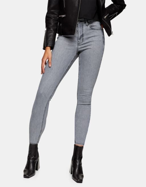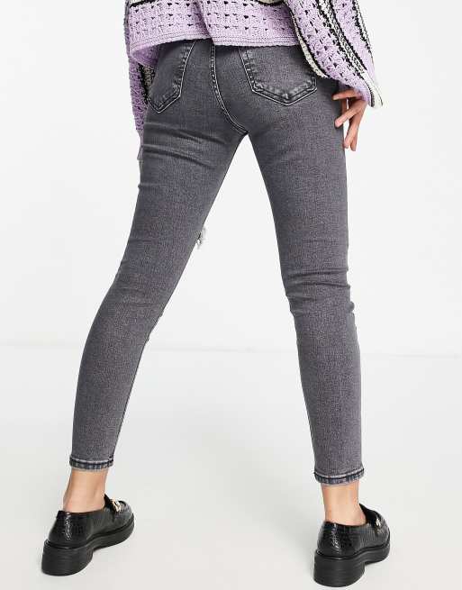 Topshop jamie jeans clearance grey, Topshop Petite Jamie jeans with thigh rip in dark grey clearance