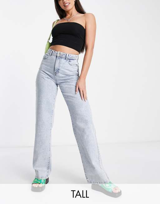 Noisy May Tall Drew high waisted wide leg jeans in light blue wash