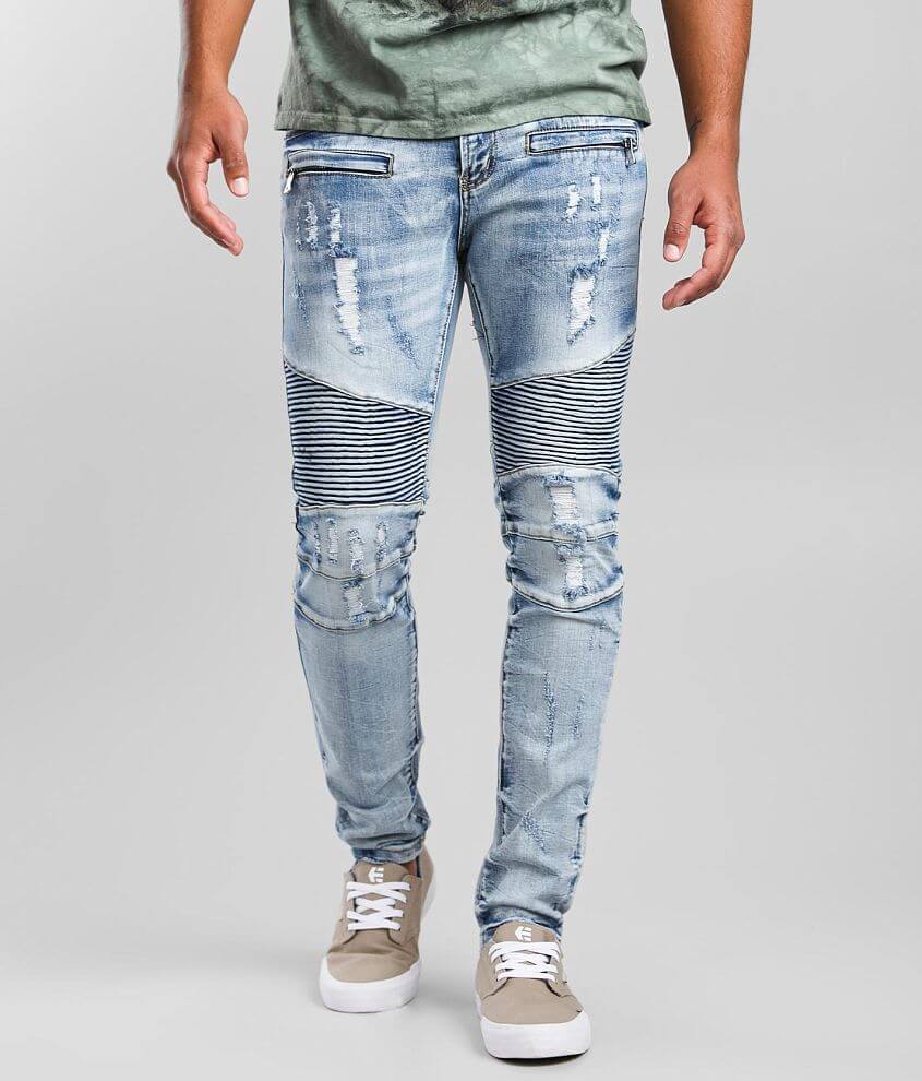 Dope clearance jeans buckle, Dope Oteil Moto Stretch Jean Mens Buckle Bleached Sz 36 Slim Fit clearance