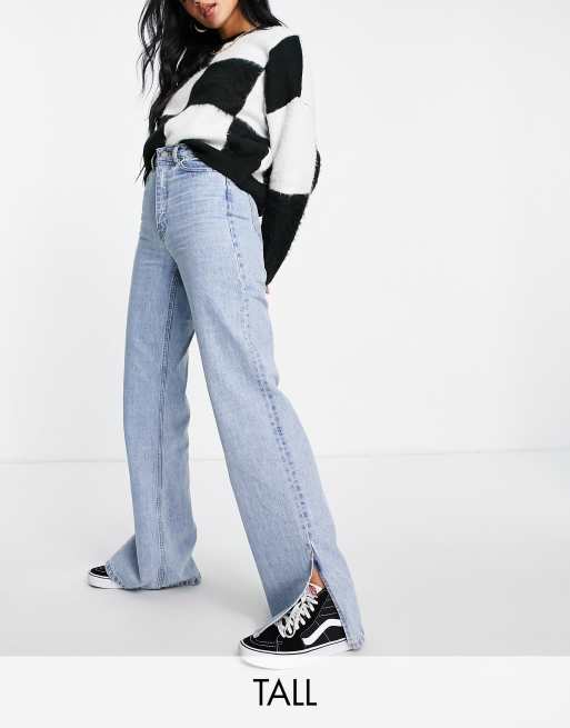 Dr Denim Tall Echo sky high wide leg jeans with side slit in light