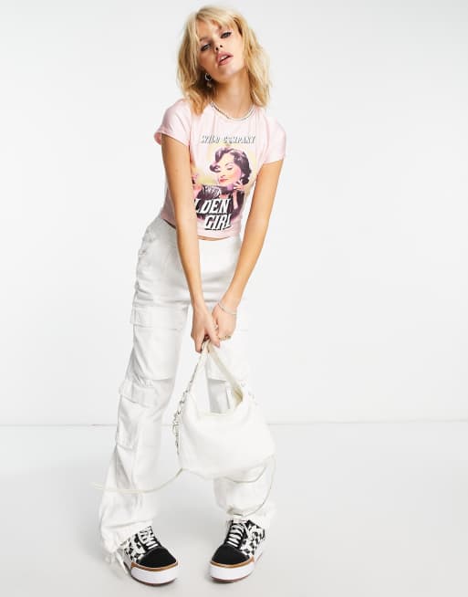 ASOS DESIGN slinky tee golden girl graphic in pink ASOS