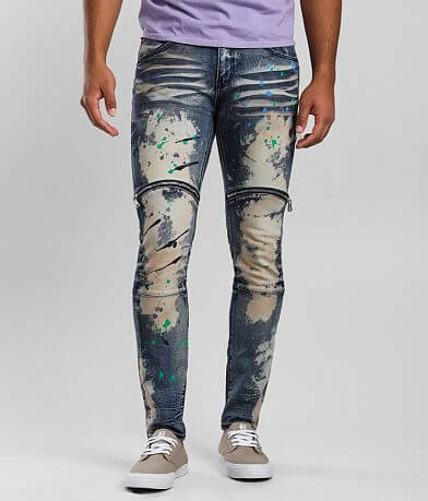 Dope Oteil Moto Stretch Jean Mens Buckle Bleached Sz 36 Slim Fit