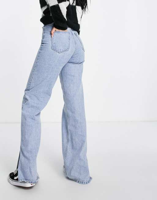 Wide leg jeans clearance with side slits, Dr Denim Tall Echo sky high wide leg jeans with side slit in light clearance