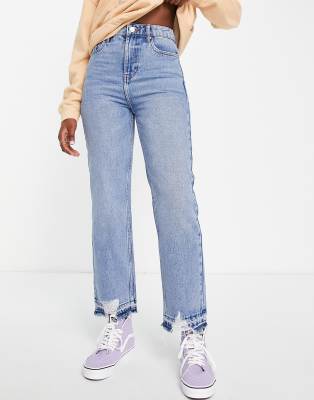 Miss Selfridge straight leg jean with fray hem in acid wash Blue