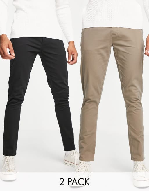 ASOS DESIGN 2 pack skinny chinos in washed brown and black save