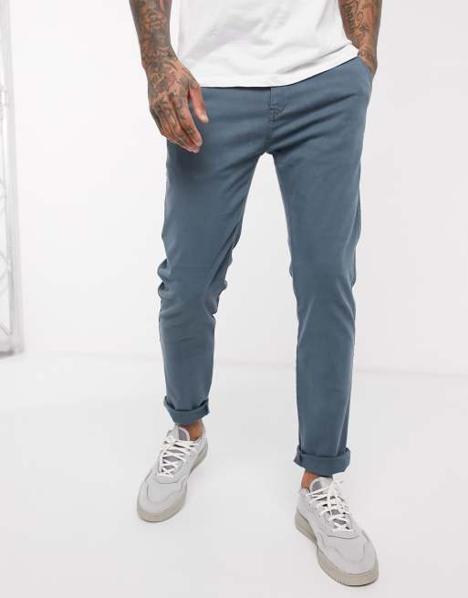 Men s Slate Grey Slim Fit Pull On Stretch Chino Trousers Threadbare