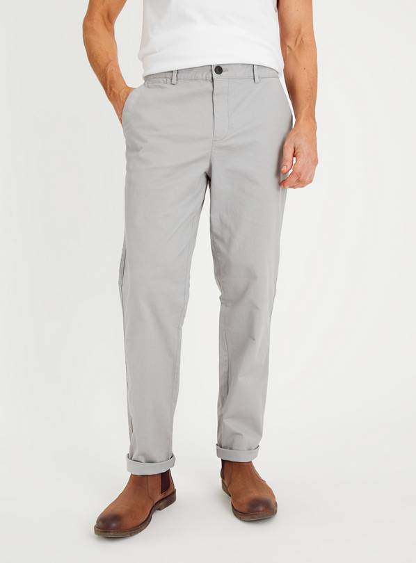 Buy Grey Straight Leg Chinos With Stretch 38R Trousers Tu