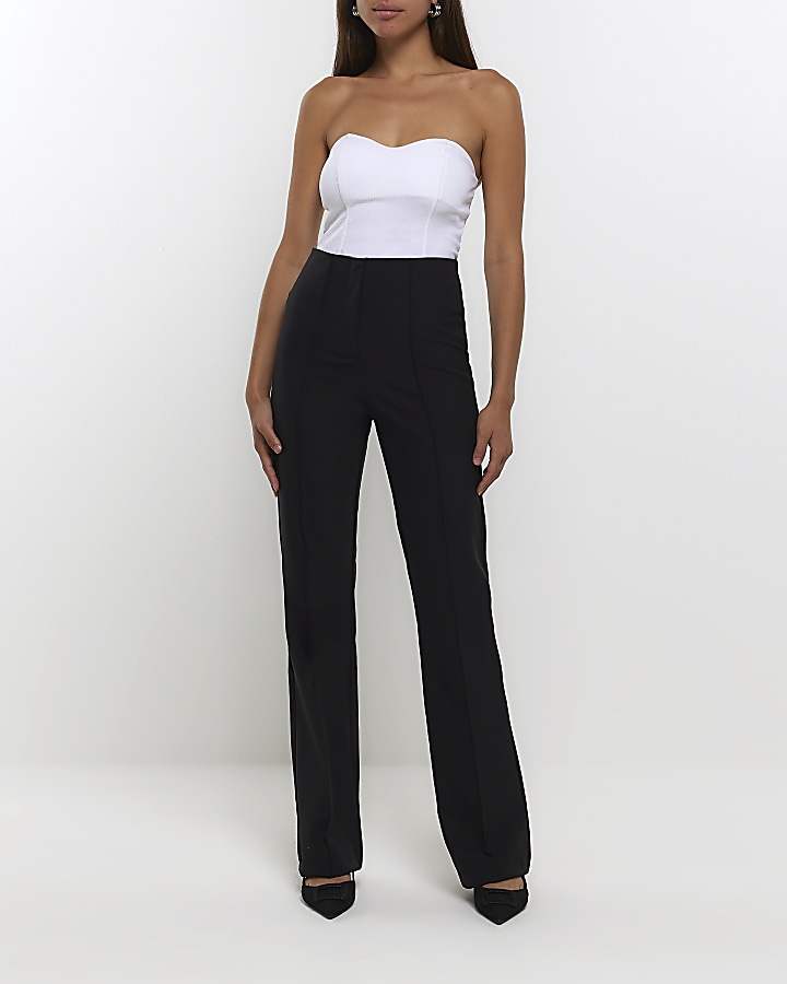 Black dress pants clearance high waisted, Black high waist straight trousers River Island clearance