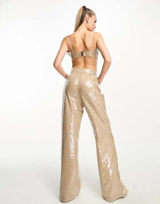 Kaiia sequin high waisted wide leg trousers co ord in gold