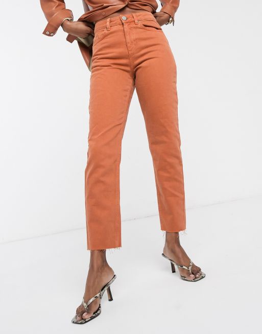 ASOS DESIGN ritson original mom jean in rust with raw hem detail