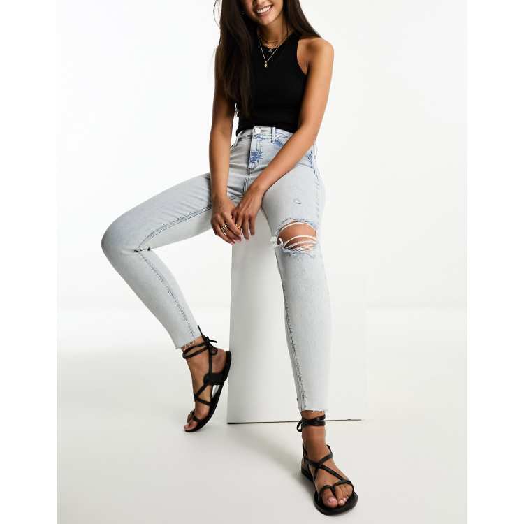 River Island Molly mid rise skinny jean with ripped knee in light blue wash