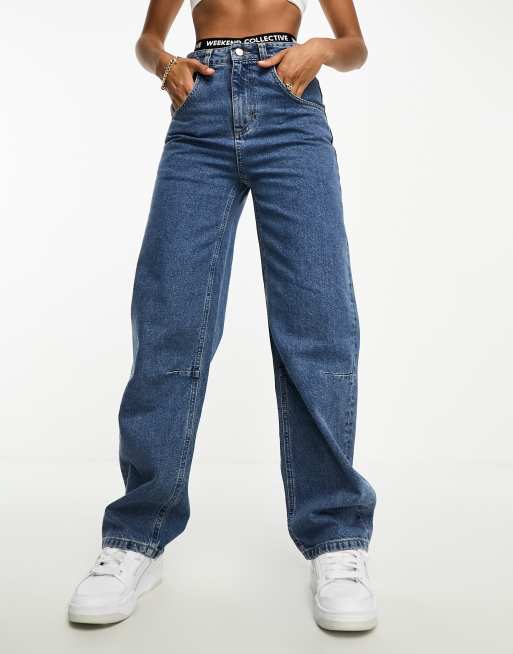 ASOS Weekend Collective baggy fit jeans in mid blue wash