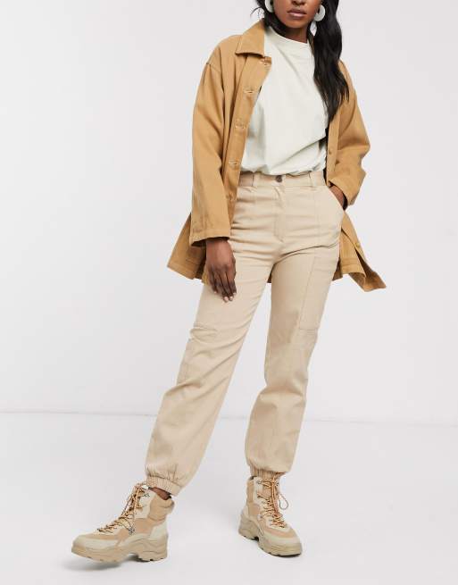 Monki cuffed cargo trousers in beige ASOS
