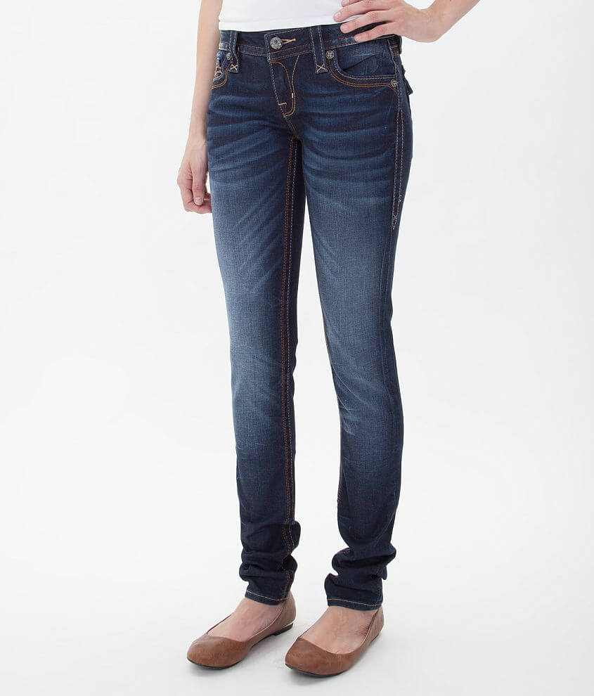 Rock Revival Jessica Skinny Low Rise Fleur De Lis Denim Whiskered