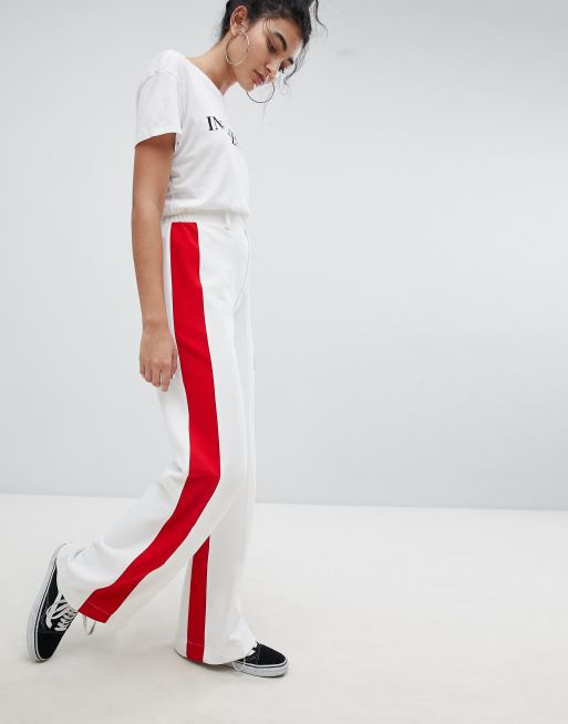 White trousers with clearance side stripe, M CO Women s Side Stripe Wide Leg Trousers clearance