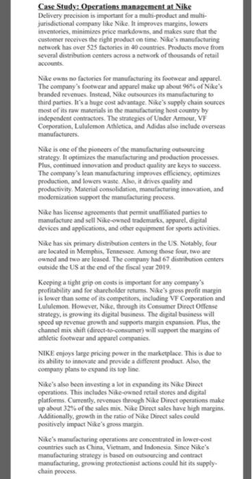 Nike clearance operation management, Solved Case Study Operations management at Nike Delivery Chegg clearance