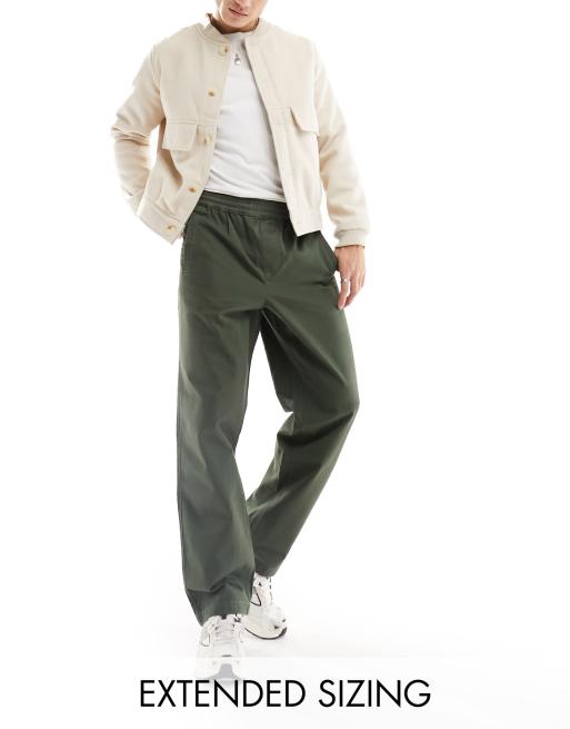 ASOS DESIGN relaxed pull on trouser in khaki with elasticated